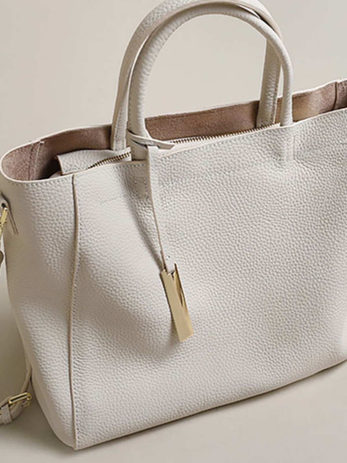 Material: cowhide Closure: zipper Pattern: solid color Color: brand new Color classification: head bag beige,head bag brown Internal structure: zipper pocket with or without laminated: no Whether foldable: No Item No.: T072515S backpack mode: shoulder crossbody handheld Style name: Tote bag